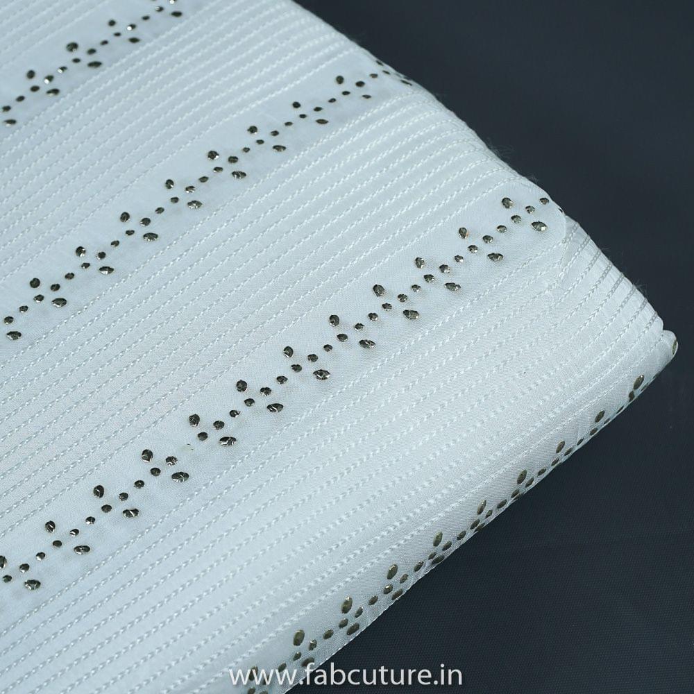 White Uppada Embroidery Fabric With Golden Due Drops and Self Dyeable Thread, Can Used for making lehengas Choli, blouse this fabric is fabulous for all, it s a dyeable fabirc. SKU:100215994