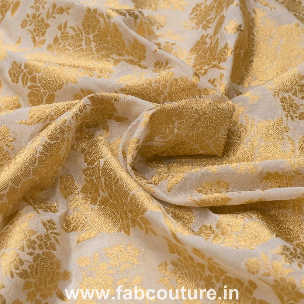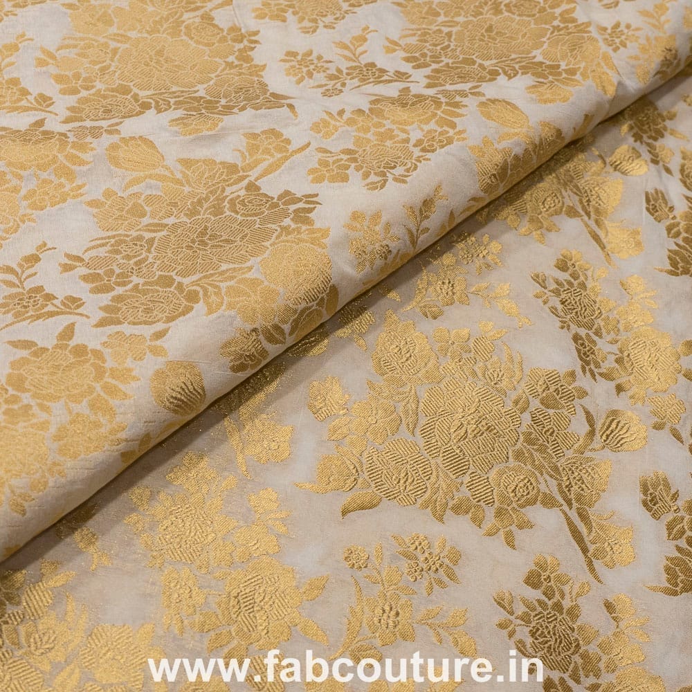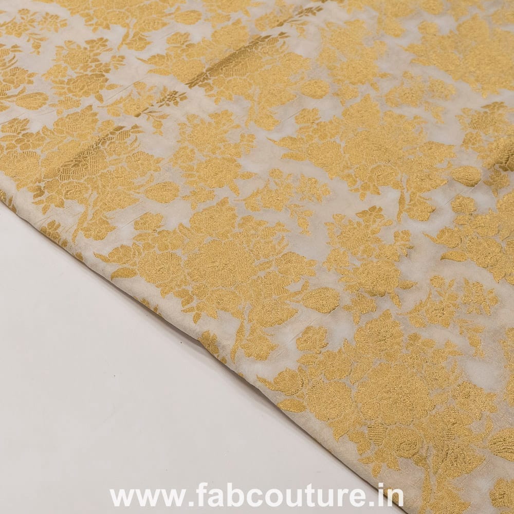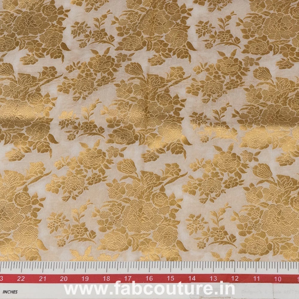 White Dyeable Gold colour Rose Jacquard Silk, SKU:100186967