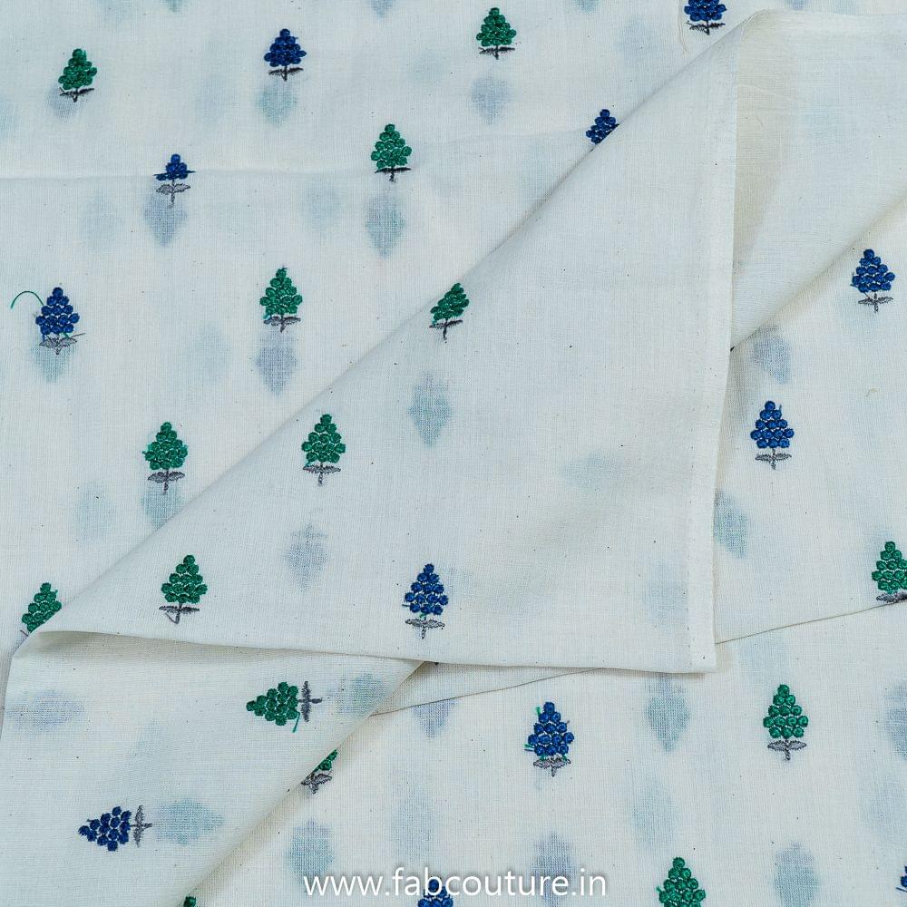 This fabric is from FabCouture Cotton Embroideries and the base is pure, soft, breathable cotton and the embroidery is in multi-colour thread which gives it a nice summer appeal. It Is good for kurtas, trousers and summer dresses. SKU: 100211802 COTTON EMB D.NO 11982
