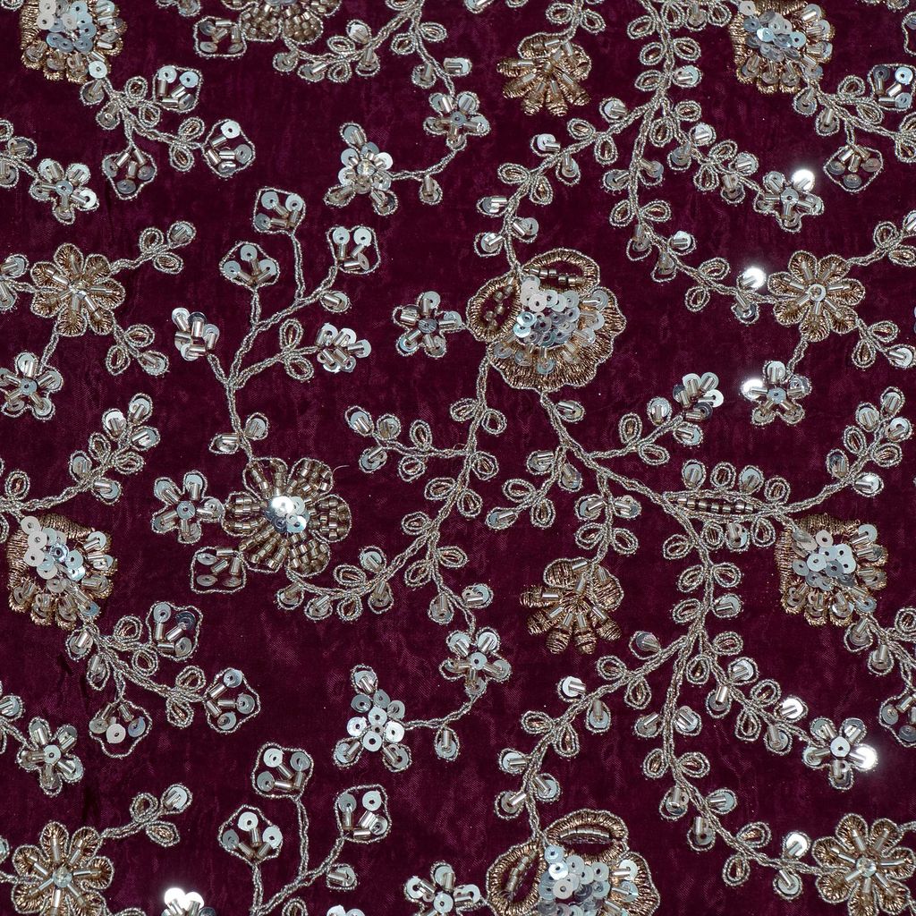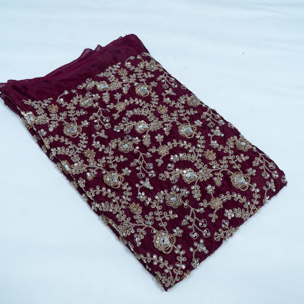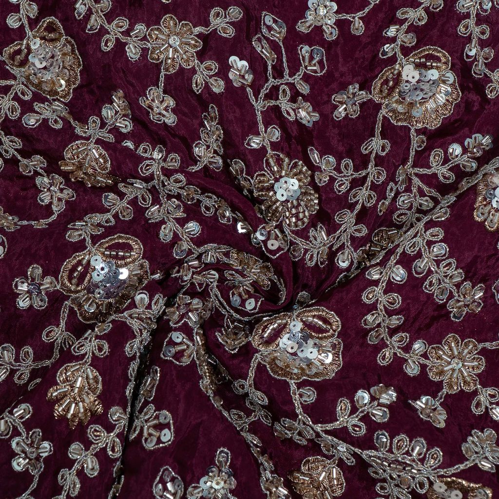 | Fabric Name | Wine Color Crepe Embroidered Fabric |