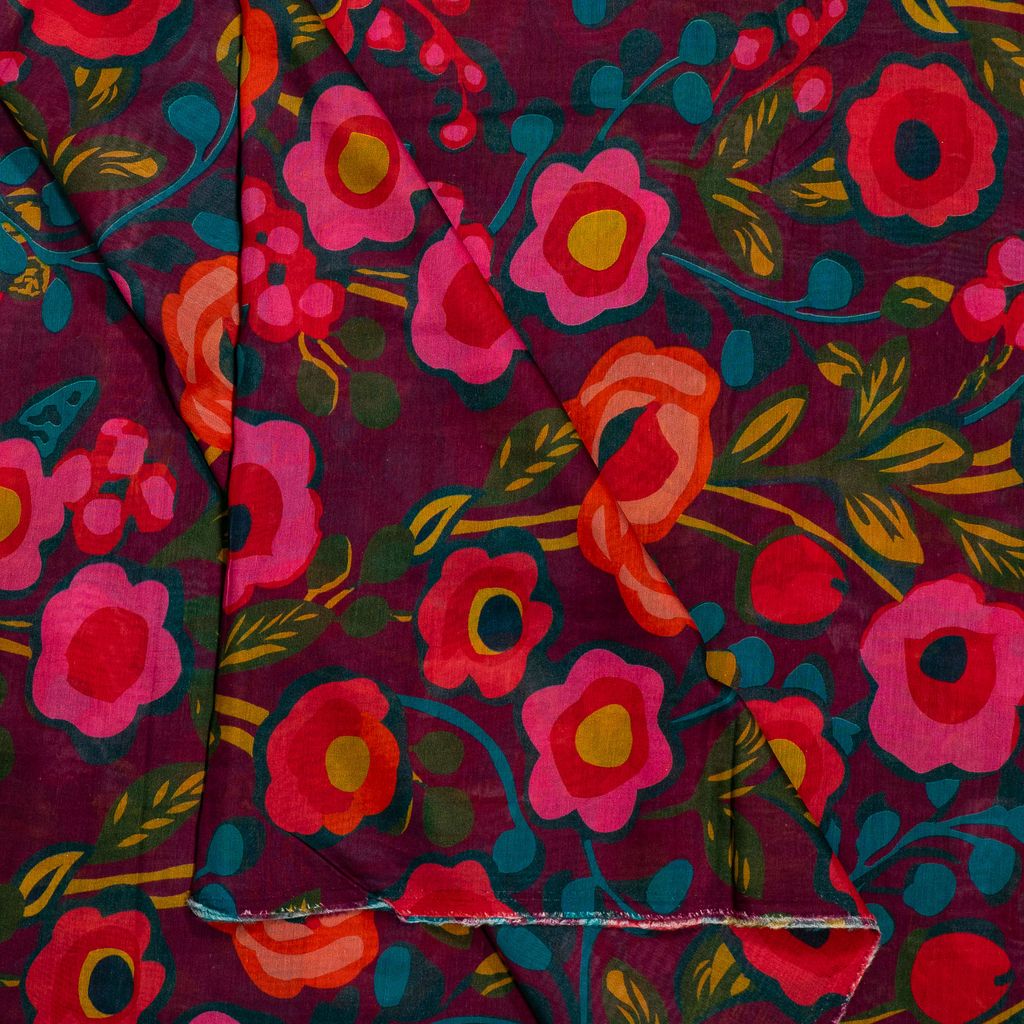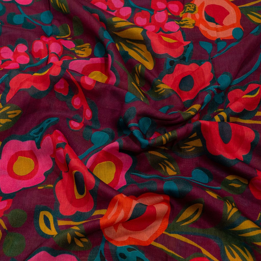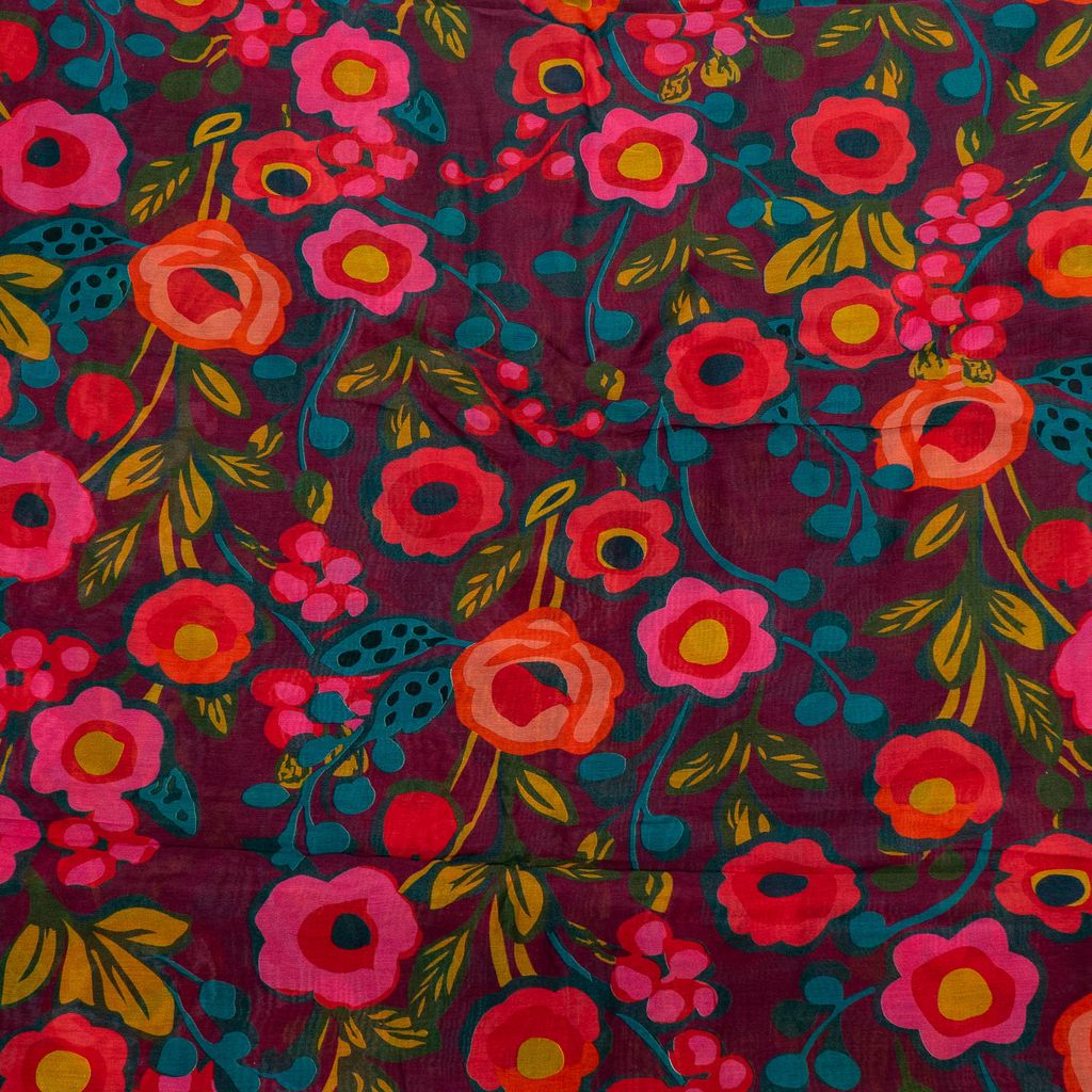 | Fabric Name | Wine with Multi Color Mal Chanderi Printed Fabric |