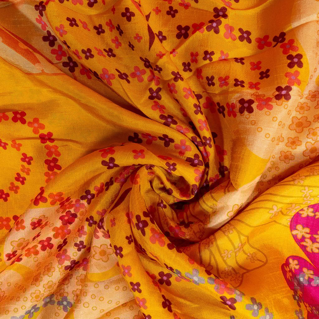 | Fabric Name | Yellow Color Dola Silk Digital Printed Fabric |