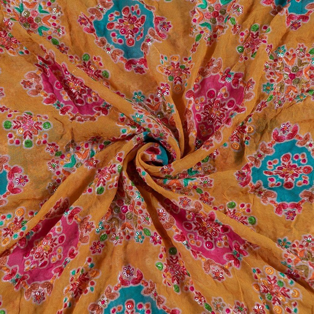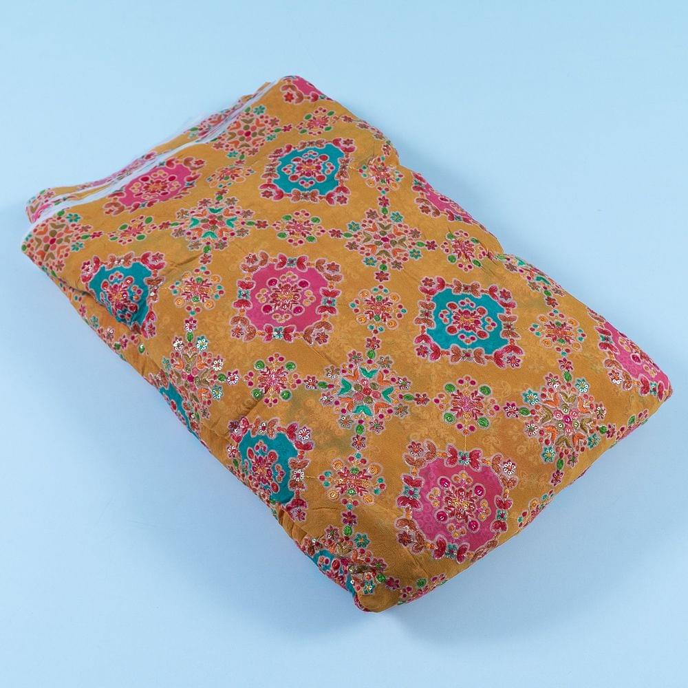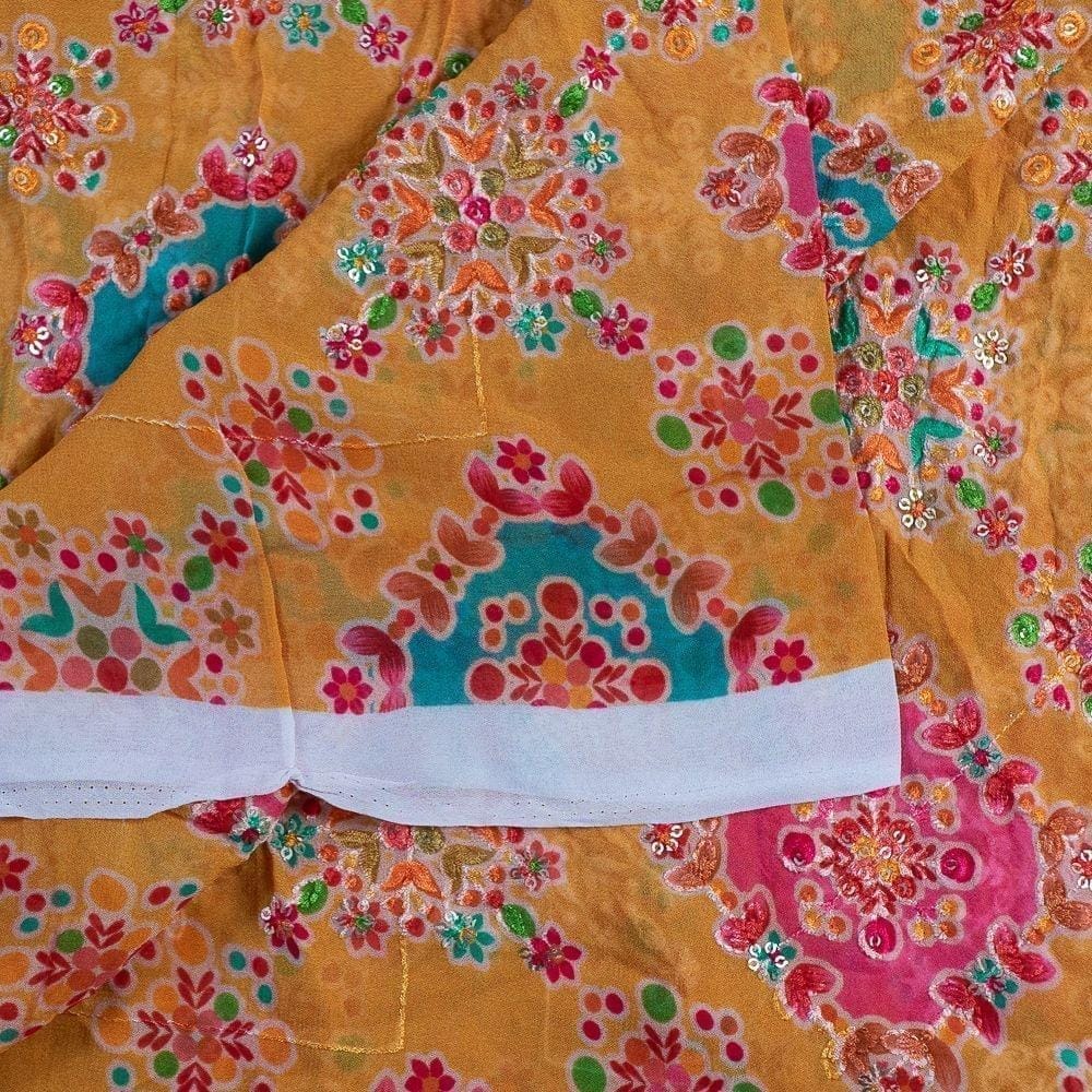 | Fabric Name | Yellow Color Georgette Print With Embroidery |