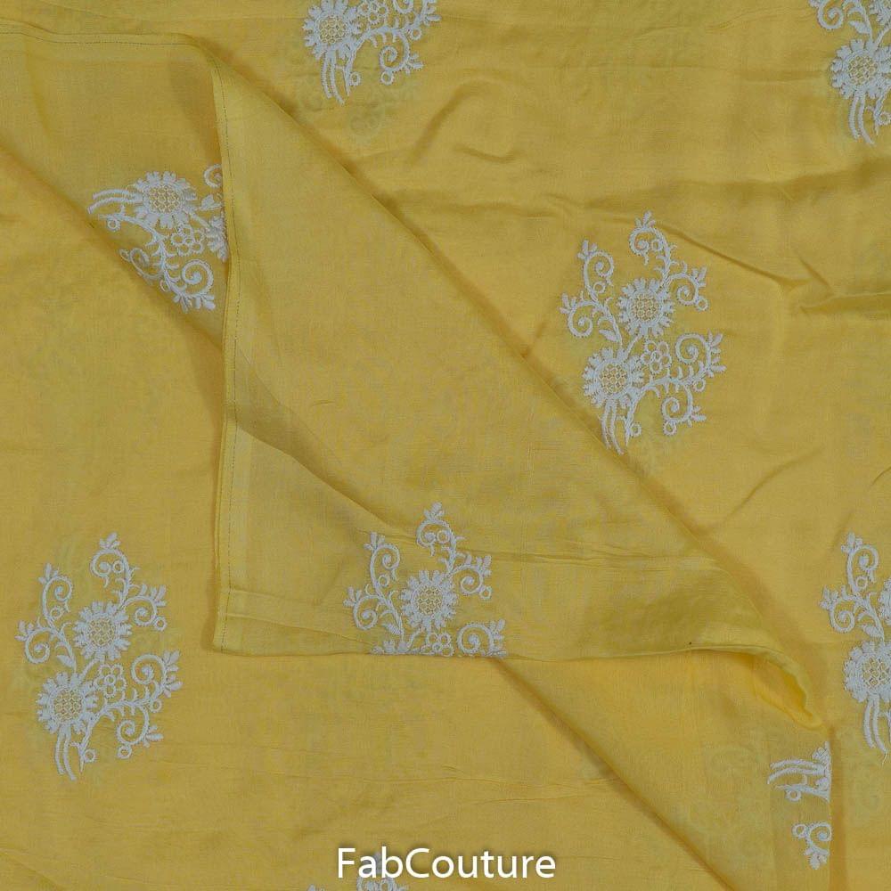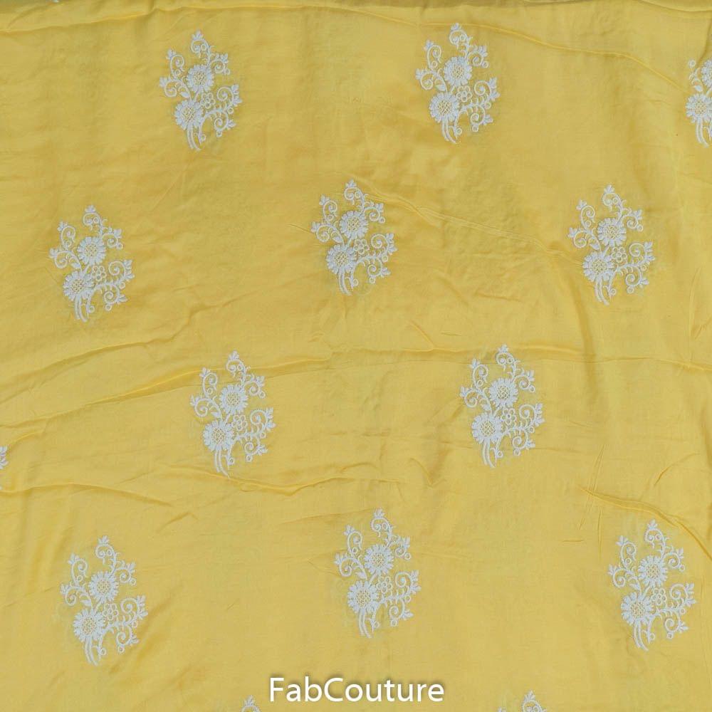 This sunshine yellow fabric from FabCouture Cotton Embroidery Collection is a must-have this summer with white thread motifs on soft, flowy muslin. It is good for making shararas, plazzo-sets, shalwar-kameez sets and dupattas as well. SKU: 100211702 MUSLIN EMB D.NO 11797