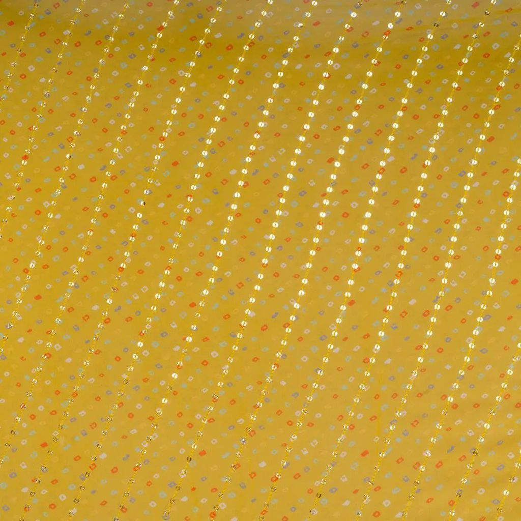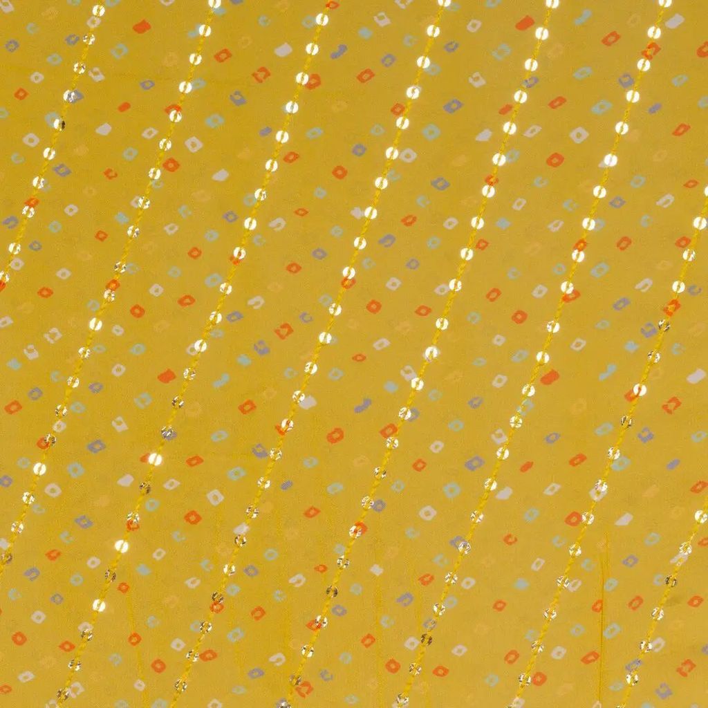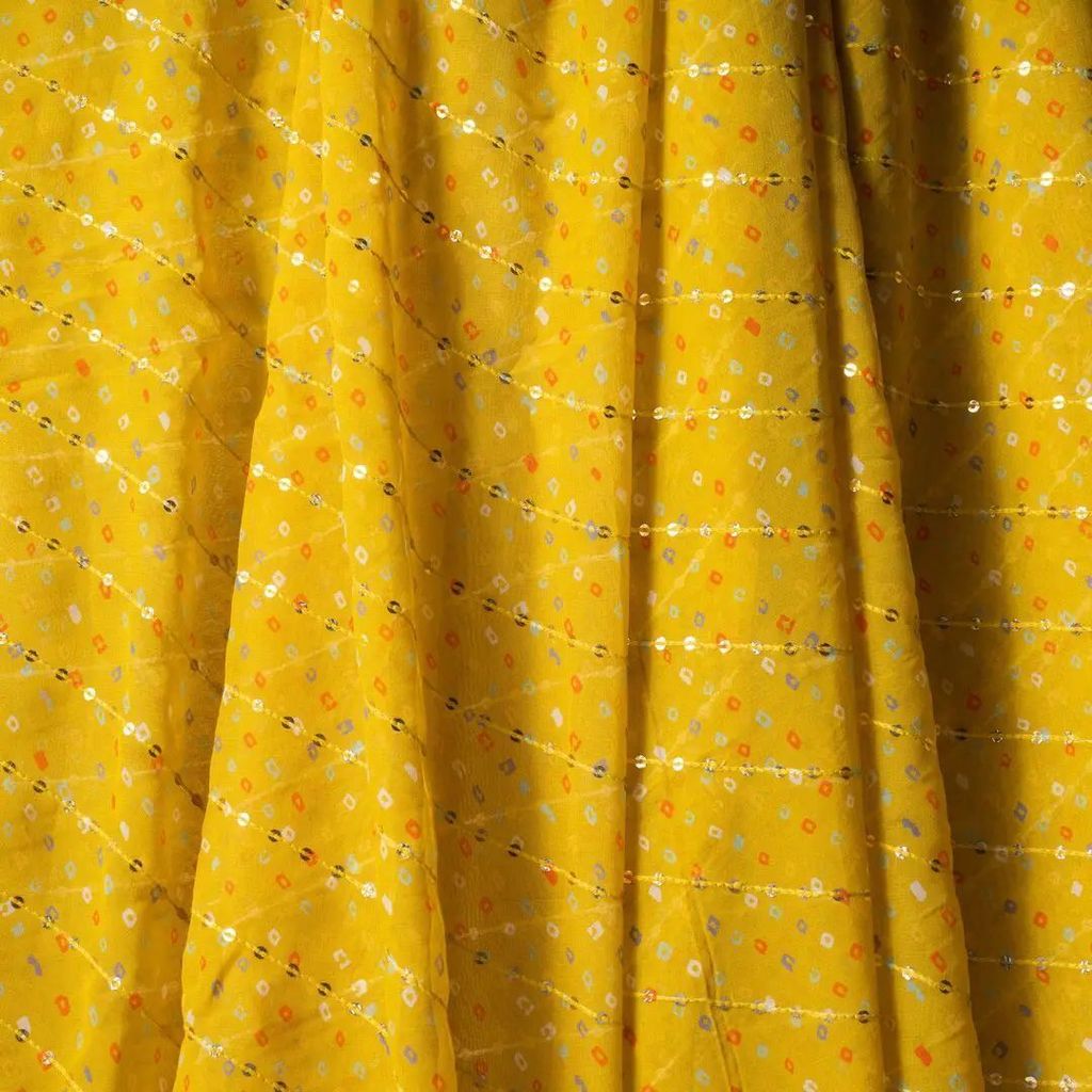 | Fabric Name | Yellow Pure Viscose Georgette Bandhej Prints with Embroidery |