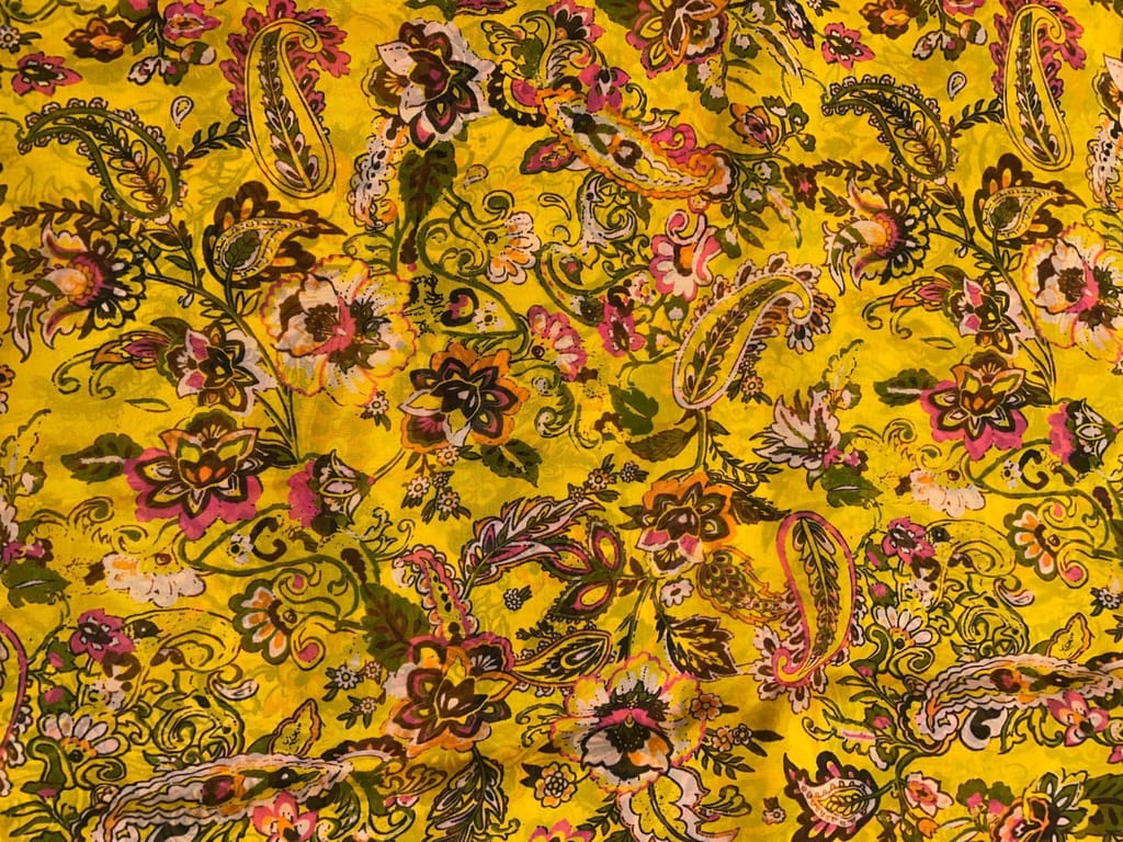 | Fabric Name | Yellow Floral Viscose Organza Fabric |